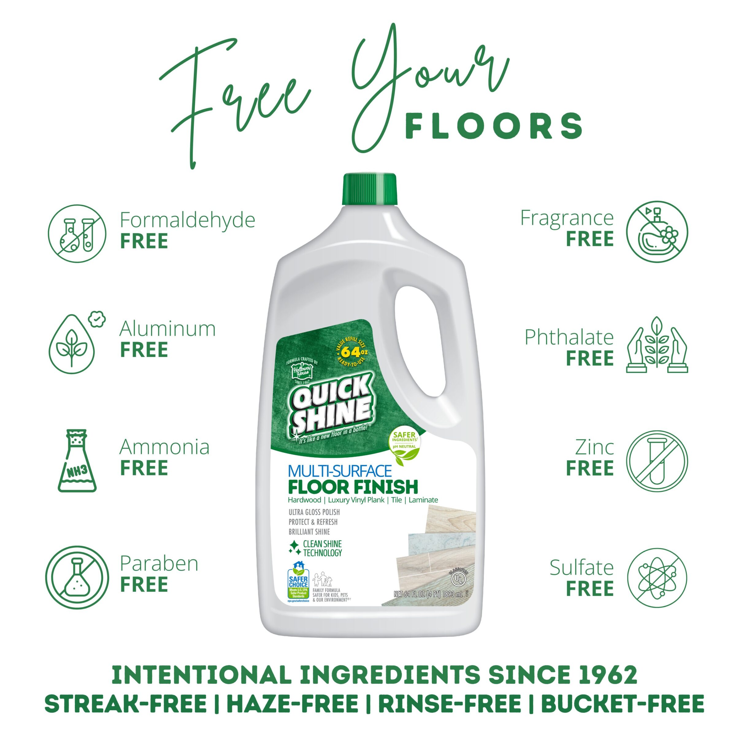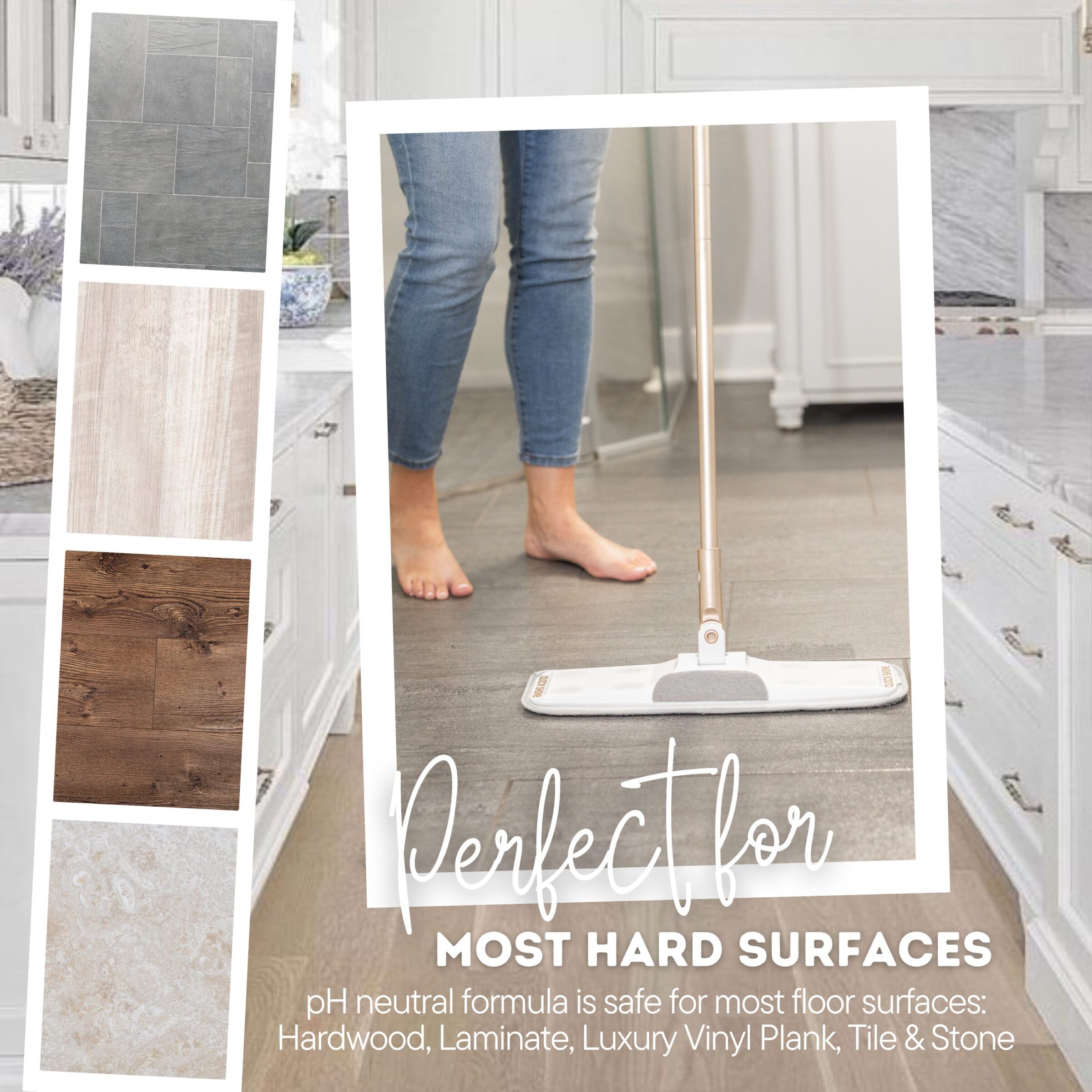 Protects and shines Hardwood, Laminate, LVT, Luxury Vinyl Plank, Tile, and Stone.