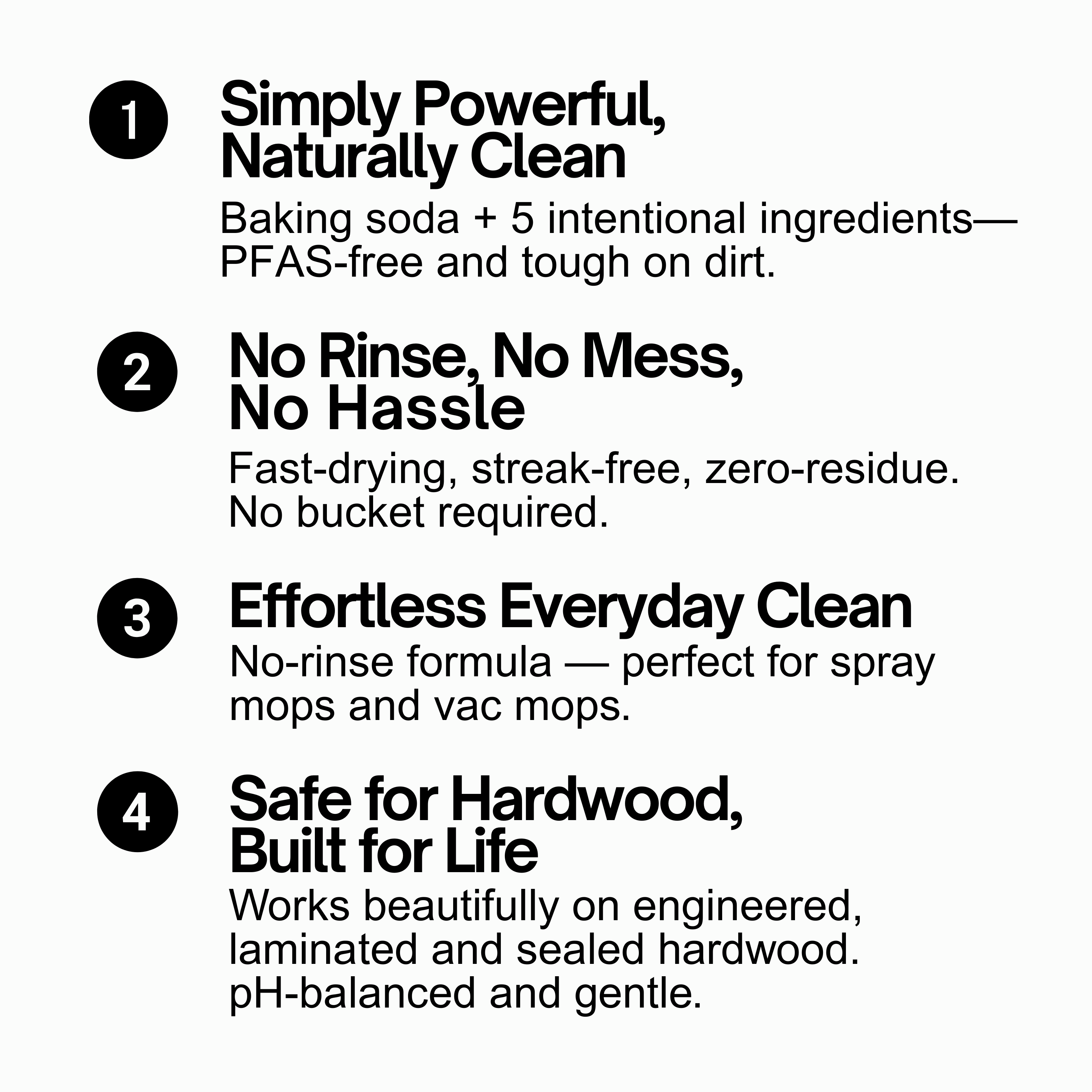 Designed specifically to clean hardwood floors in high-traffic areas. No hazing, streaking, or sticky film left behind.