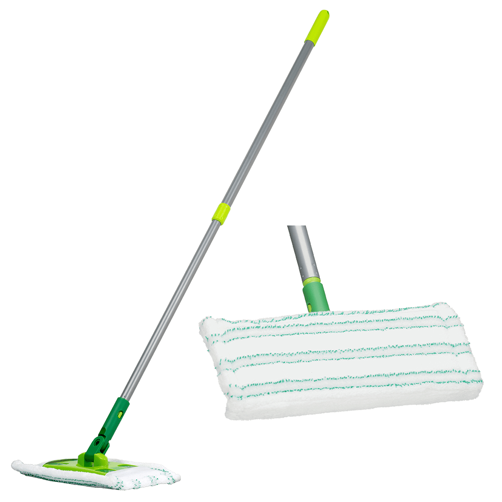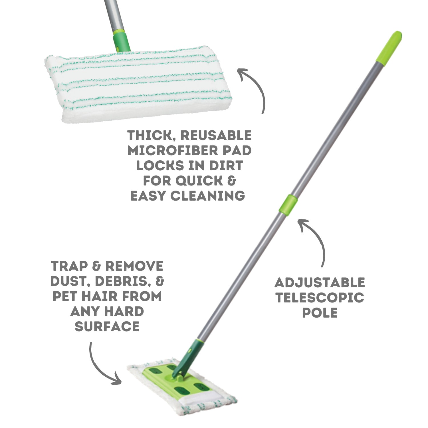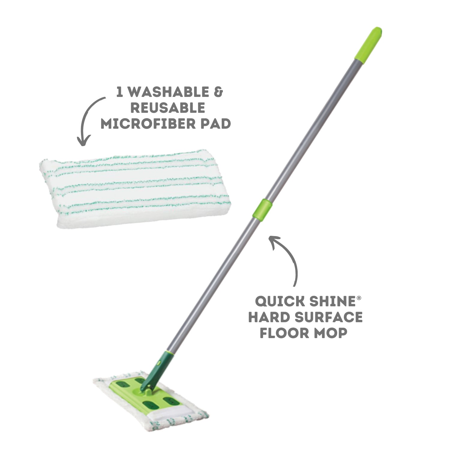 The swivel mop head easily maneuvers under and around furniture. Use a dry Microfiber Mop Pad to remove dust and pet hair from any hard surface, or dampen the mop pad to apply Quick Shine® Floor Finish or Quick Shine® Hardwood Floor Luster.