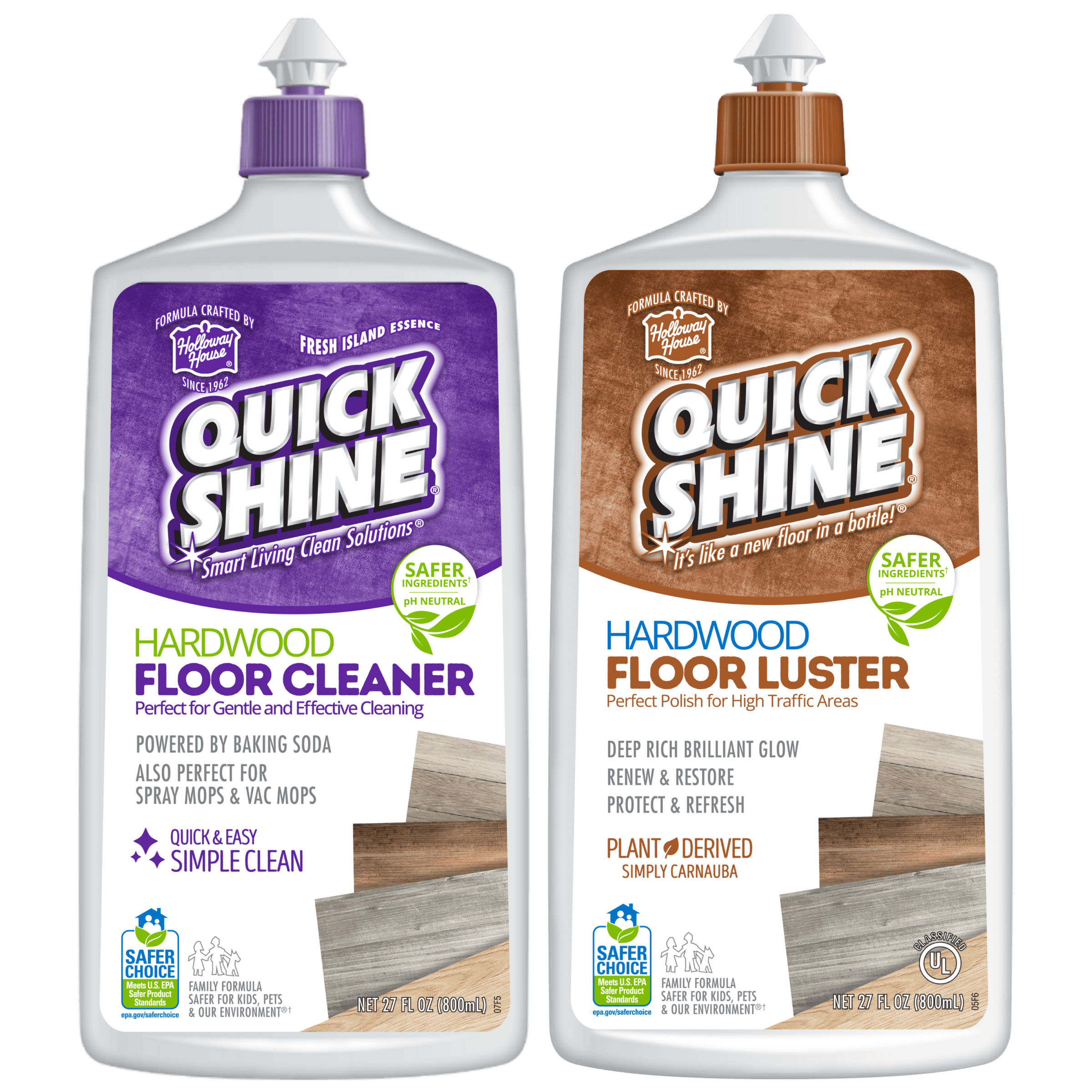 Dull hardwood floors? No more! Designed specifically for this classic flooring, the Quick Shine® Hardwood Cleaner and Luster will clean and restore the color and beauty to hardwood with a deep, rich, long-lasting and protective glow.