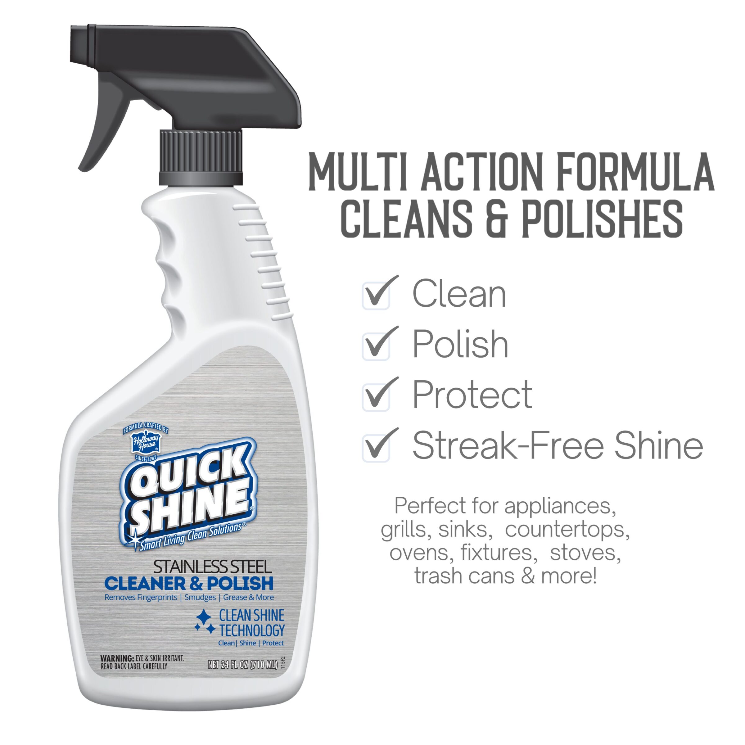 The Quick Shine Stainless Steel Cleaner & Polish is easy to use – simply spray and wipe for instant results. This versatile cleaner is ideal for stainless steel refrigerators, ovens, dishwashers, and more.