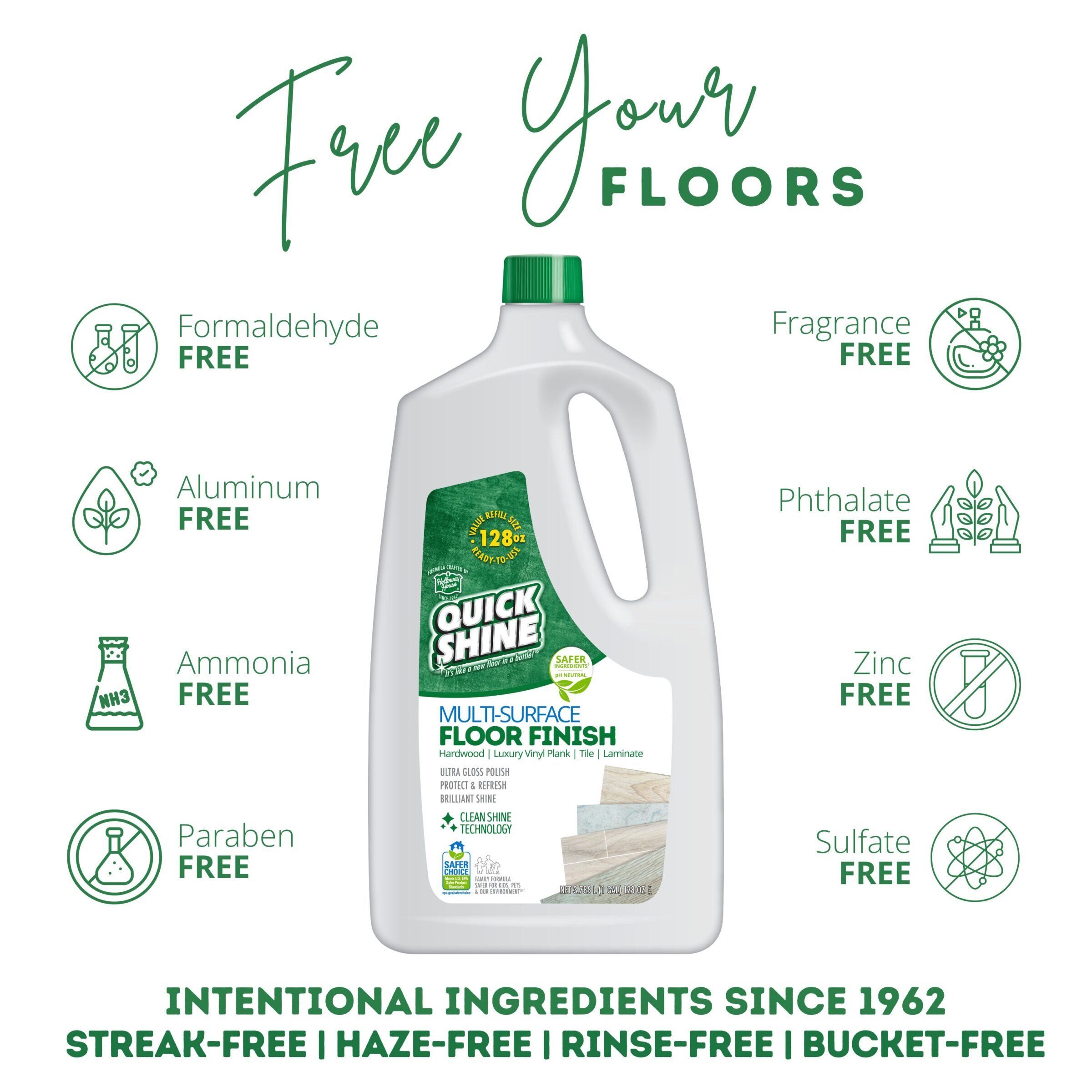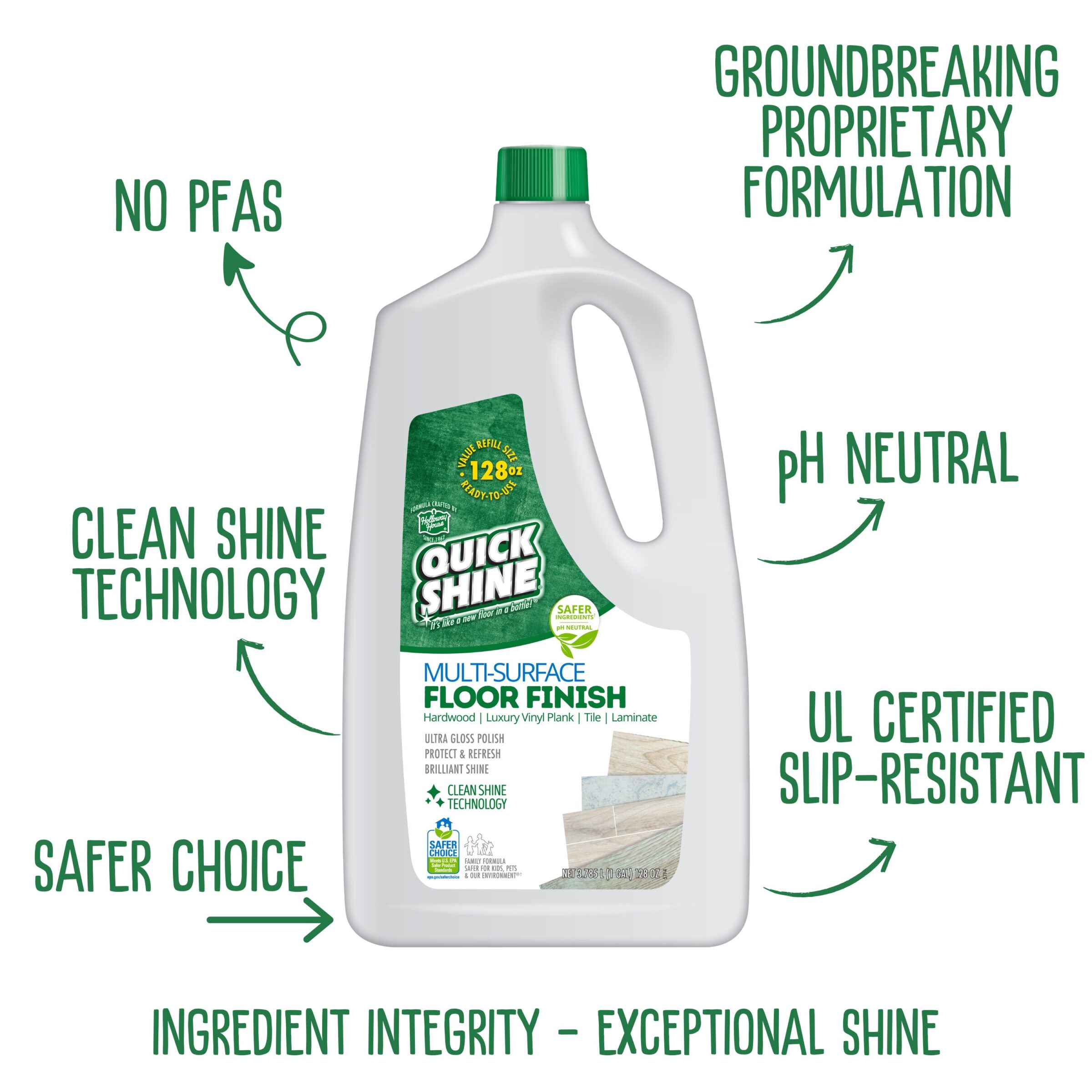 Protects and shines Hardwood, Laminate, LVT, Luxury Vinyl Plank, Tile, & Stone. Now in 128 oz. Pro Size.