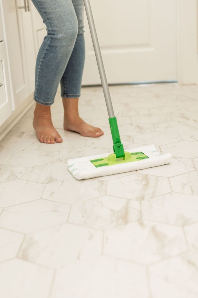 Always vacuum and dust before cleaning your floors! Make sure your vacuum doesn’t have the brush roll on, then dry mop to pick up anything missed.