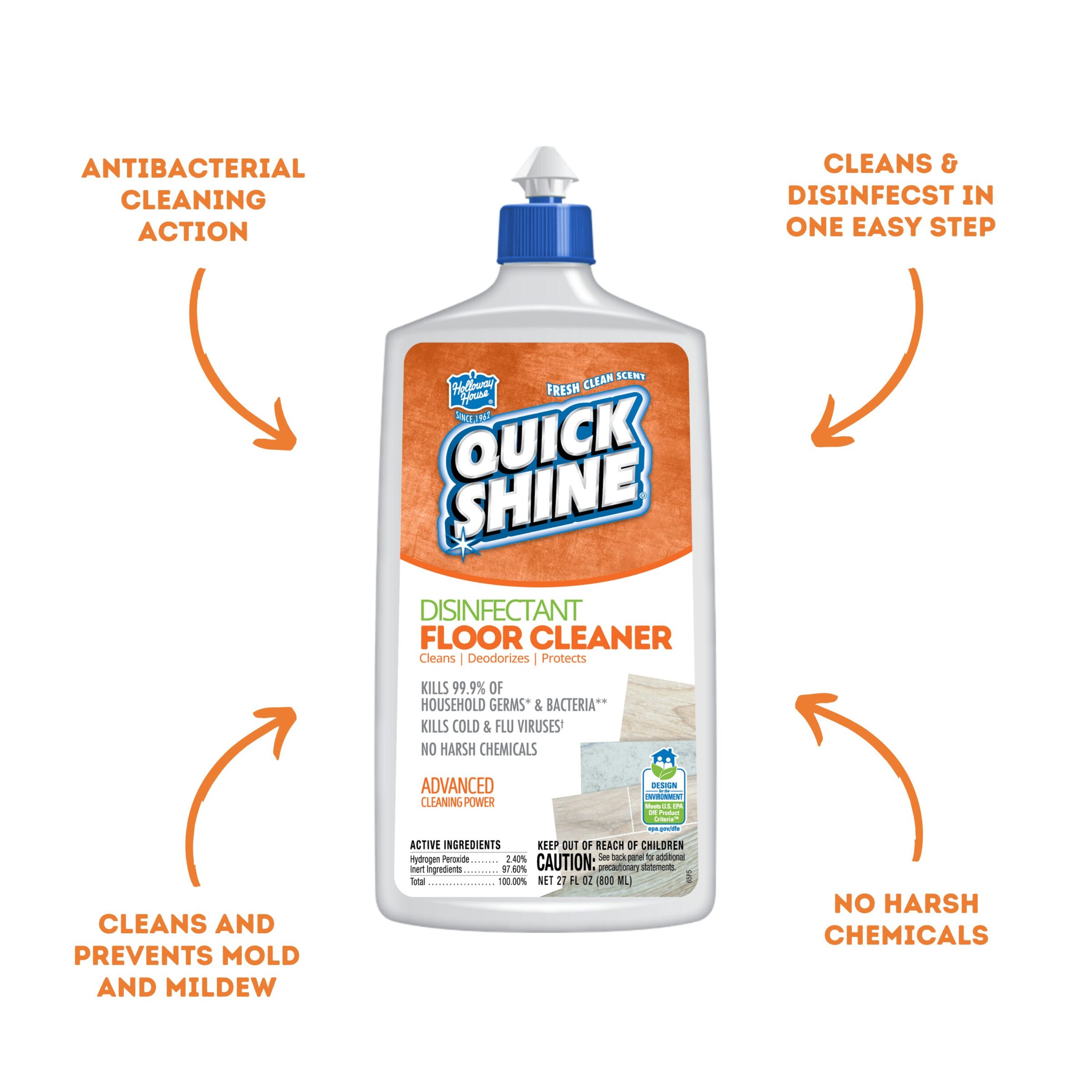 Quick Shine Disinfectant Floor Cleaner combines streak-free cleaning with antibacterial cleaning action from the trusted heritage of Hydrogen Peroxide.