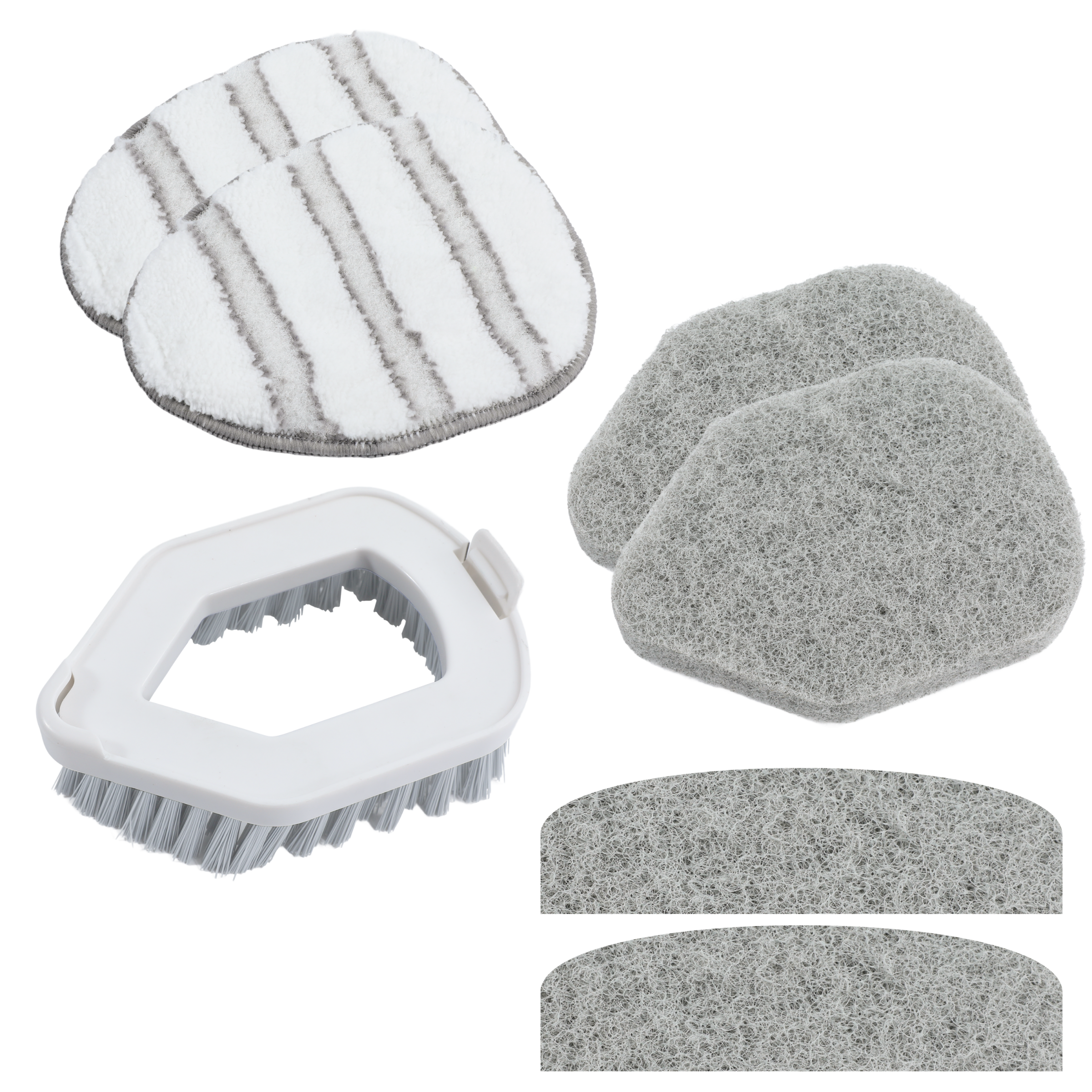 Complete 7PC Accessory Set – Includes 2 triangular microfiber pads, 2 triangular scour pads, 2 scour strips, and 1 scrub brush to power through dirt, dust, and grime.